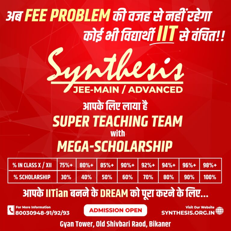 A leading coaching institute for the preparation of Pre-Medical (NEET-UG), JEE (Main + Advanced), and Pre-Foundation (8th, 9th, 10th). The institute where dreams take flight and aspirations find wings. At Synthesis, we believe in fostering a nurturing environment and focus on building a strong conceptual foundation for both competitive exams and board-level education. With a team of dedicated and experienced mentors, and through personal care, we ensure that students are fully prepared to tackle the challenges of these exams with confidence and excellence.